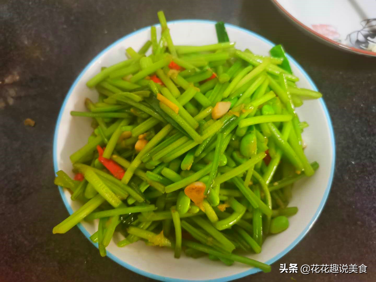 豆粒一般都配青椒来炒的比较多一些,今天妈妈用红薯梗配着豆粒一起炒,不仅颜色好看,而且口感更丰富一些,红薯梗被誉为“蔬菜皇后”,是真正的绿色蔬菜,入秋后,把这两种食材搭配在一起,再合适不过了,一盘只要2块钱,吃起来比肉还好吃,根本停不下来。