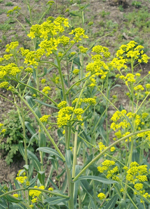 二年生草本植物,整株形态类似“油菜花”,茎直立,上部多分枝,稍带粉霜。叶矩圆状椭圆形,有柄,或半抱茎。花黄色,果实为短角果,矩圆形,扁平,边缘有翅。