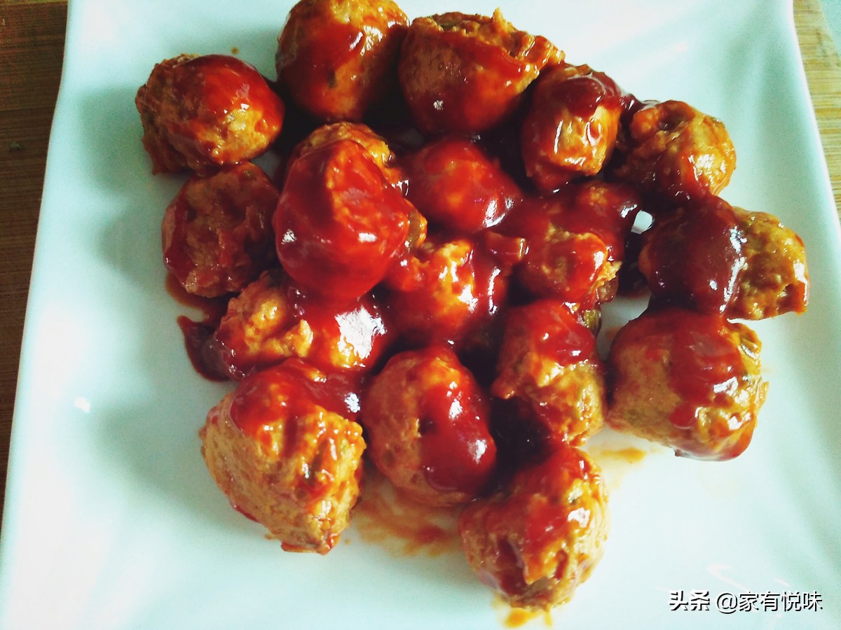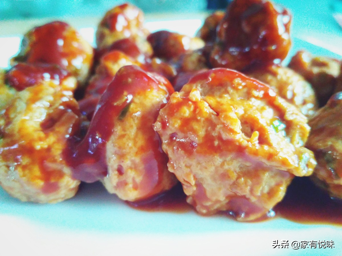 9、这样酸甜适中,软糯嫩滑的茄汁肉丸就做好了,女儿特别喜欢吃呢,如果喜欢就试试吧。