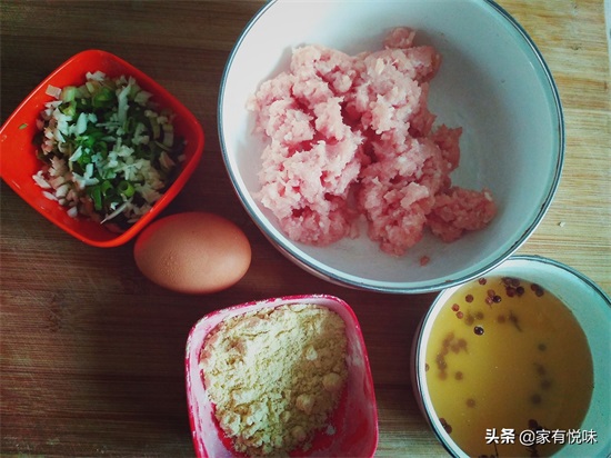 准备食材:猪肉馅200克,豆面25克(用打豆浆剩余的豆渣更好),鸡蛋1个,葱姜末适量。