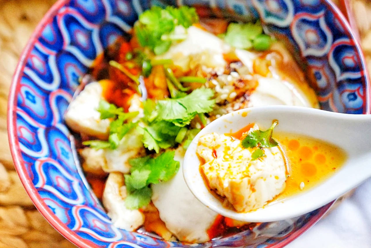 蒸好的豆腐出锅,浇上卤汁,滴辣油少许,香油少许(必须的),码上些小榨菜、香菜,即可开吃,绝对香浓滑嫩。从备料到端上桌,总共不超过10分钟,做法简单零失误,营养丰富,鲜香美味,经济实惠,上班族作为日常早餐,真的再合适不过了。