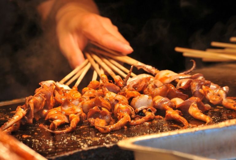 鱿鱼的很多地方都可以做成美食,鱿鱼头、鱿鱼须、鱿鱼足等,不同部位价格不同。新鲜的鱿鱼放在铁板上,吱吱作响,当煎的鱿鱼变色传出香气,再刷上酱料,甜辣鲜香又Q弹的铁板鱿鱼就做好了,这个一定要趁热乎吃下,稍微凉了就会有腥味。