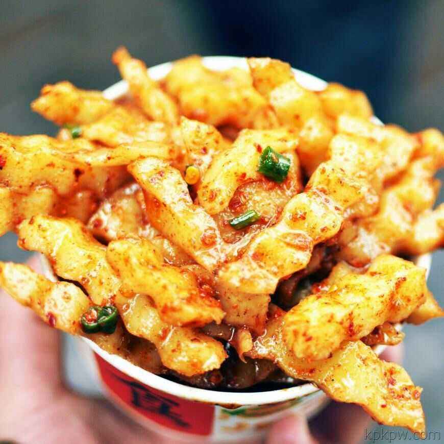 炸串串绝对是路边摊里的NO.1,无数人魂牵梦萦的存在。炸串串的食材特别丰富,小年糕、韭菜、海带、火腿肠、豆腐泡等等,都可以拿来做成食材,再刷上摊主自制的甜酱或是辣酱,或是撒上孜然粉、辣椒粉,真是一绝!