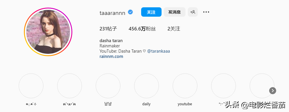 目前,Dasha Taran的INS有456万粉丝,放之于全世界,也已经是个大网红了。