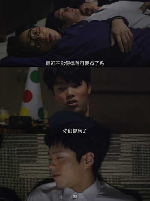 所以最后狗焕告白的时候,德善没有哈哈大笑,(如果是喜东东,德善肯定会认为是开玩笑的),她的眼神没有兴奋,而是一副释怀,不知道大家有没有注意到一个细节,(德善在扭头看阿泽有没有来),这个时候狗焕已经注意到了,那时他的内心该有多疼。