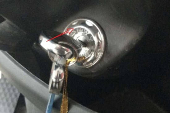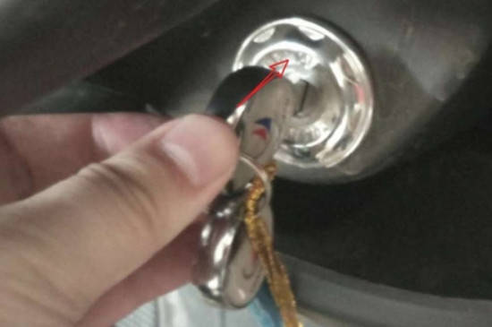此时将车钥匙插入钥匙孔内,下压钥匙的同时要往左边转动,一直转动到无法继续转动为止,此时再握住左握把并向右边转动一点。