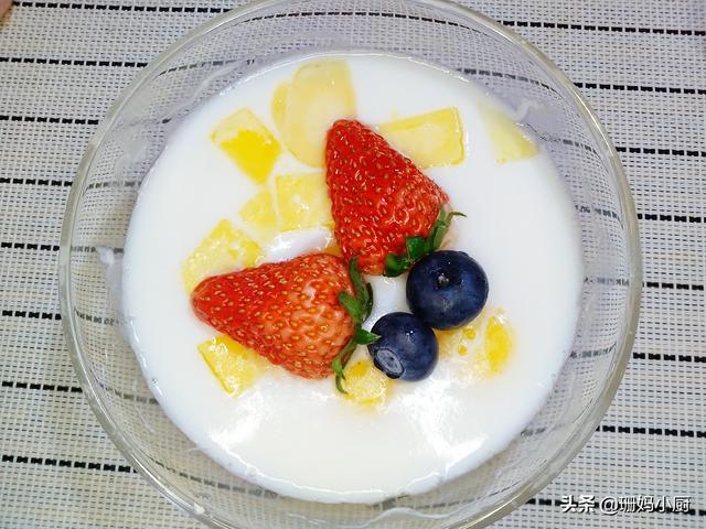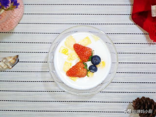 可以根据个人喜欢的口味进行调配,加入水果、淋些糖浆、蜂蜜等,吃时轻轻划成小块,既?好吃又解馋,外观还美美的。做法还超级简单,不加牛奶就是透明状的白凉粉,放入色泽鲜艳的水果、或倒入果汁,就成美美的果冻了,家里有小孩的可以试试,学会了自己动手做,不用在外面买了。