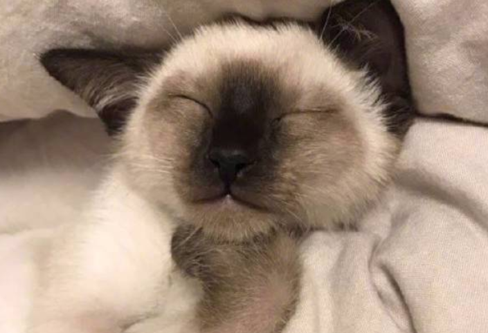 暹罗猫与其它猫咪不一样的是喜欢每时每刻都粘着宠主,连睡觉也要宠主抱着它一块睡觉,网友都说它是个粘人精。