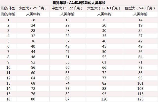 狗狗按照体型分大型犬、中型犬和小型犬,一般来说,体型越大的狗发育会更快,所以老得也更快,所以不同体型的狗,其实年龄会有所差异。