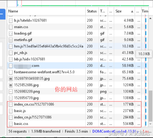 同时我们也可以在打开或刷新网站时,通过360或谷歌浏览器的F12功能检测到域名响应速度,如果服务器响应速度慢,就会导致域名响应加载速度非常缓慢,我们看到的展示效果就是访问网站,半天还是空白加载中的状态。