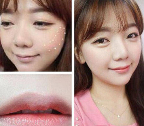2、唇部,在唇上打上高光,可突出你的双唇,让它更显丰满与粉嘟嘟的。