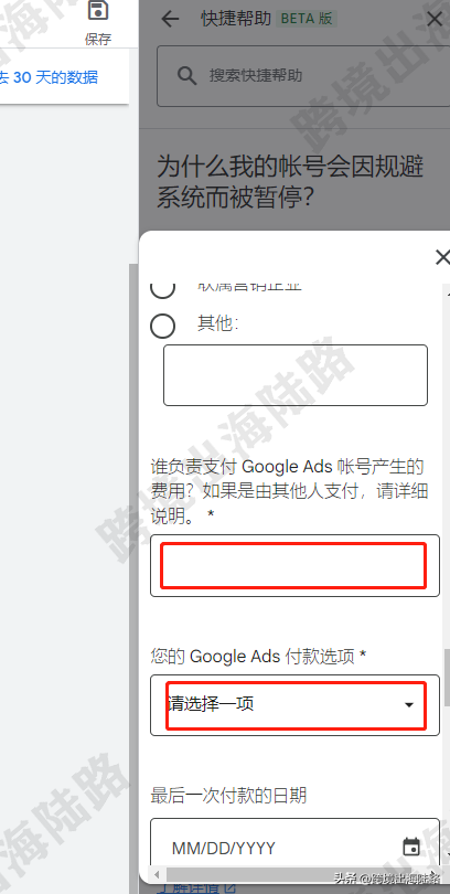 11.填写谷歌账号费用支付人、选择Google Ads付款选项