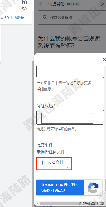 13.填写问题描述,点击选择文件,把准备好的申诉信上传