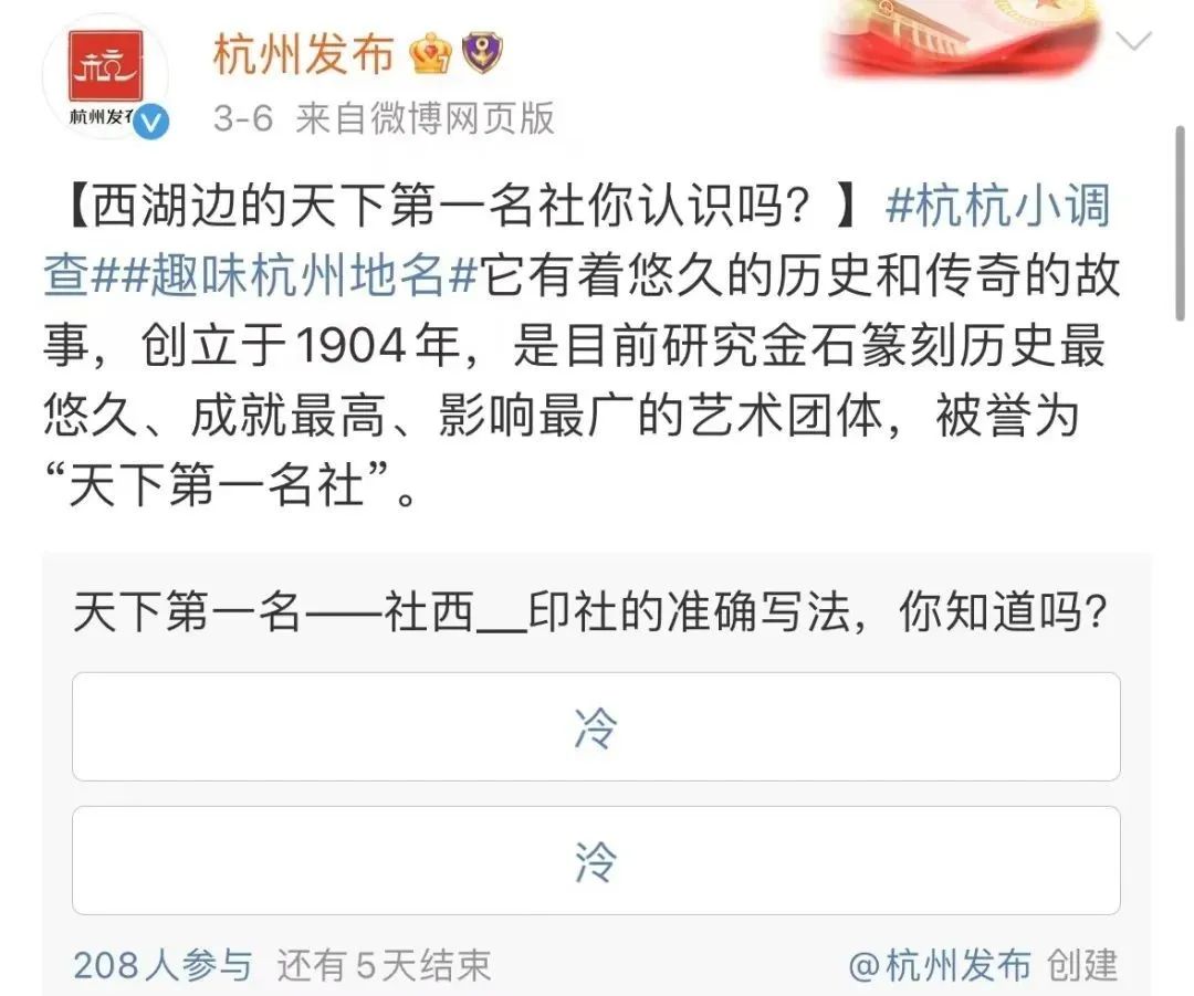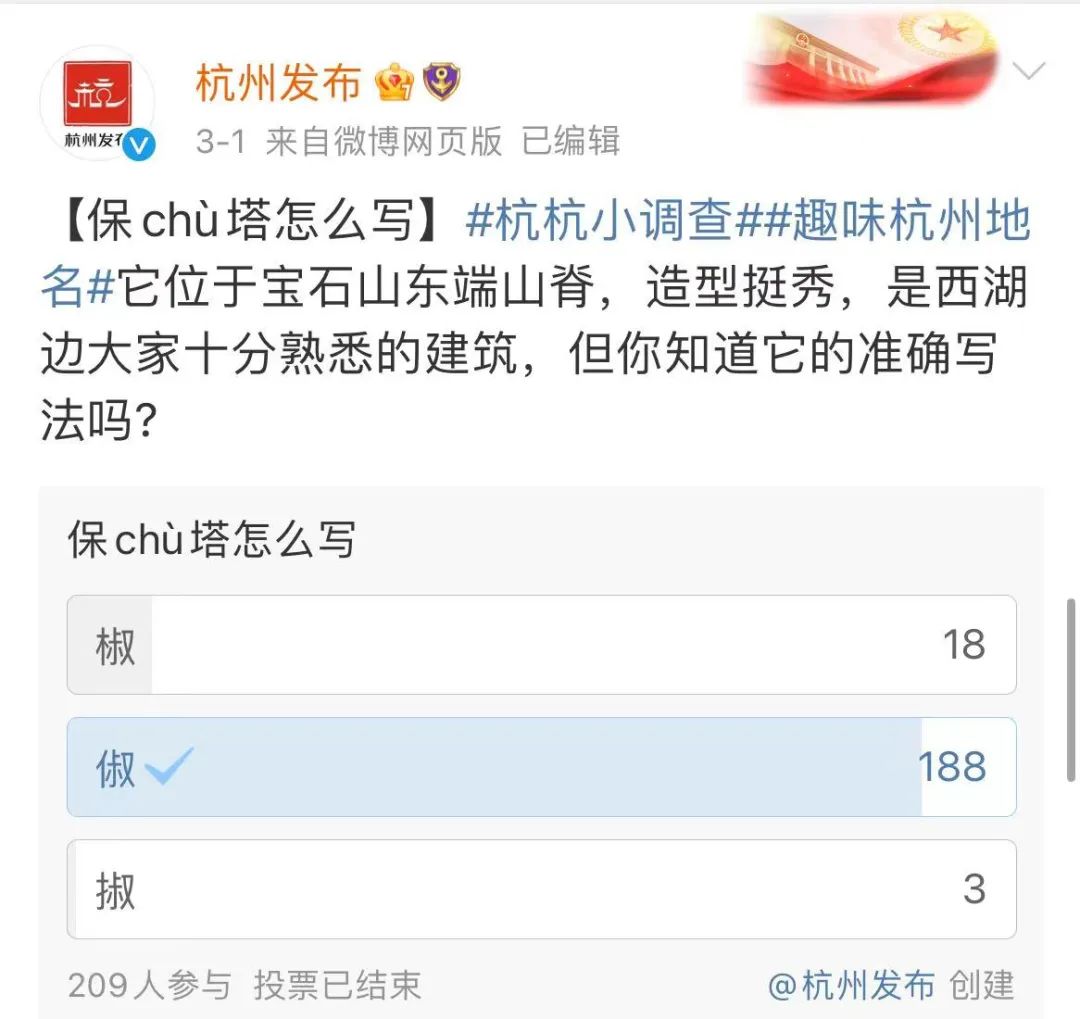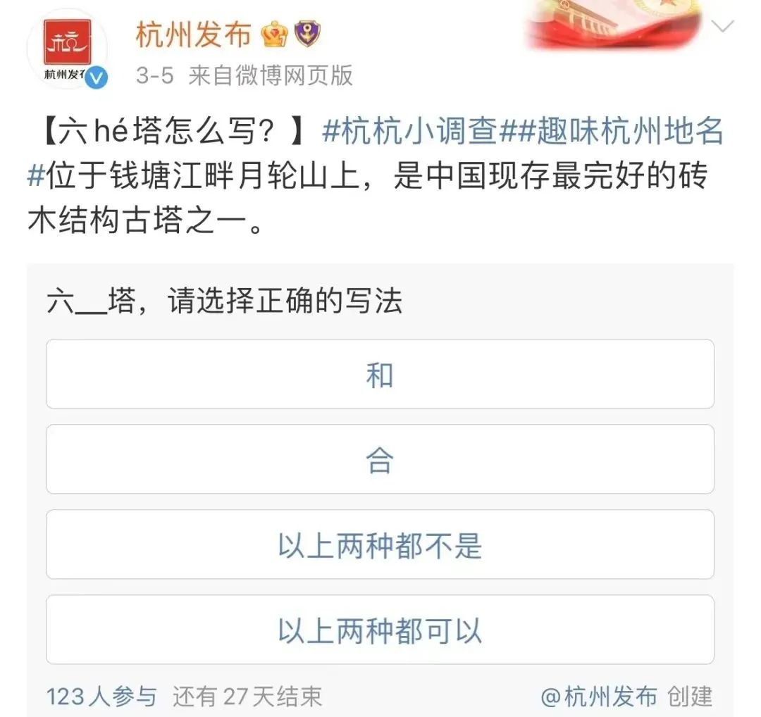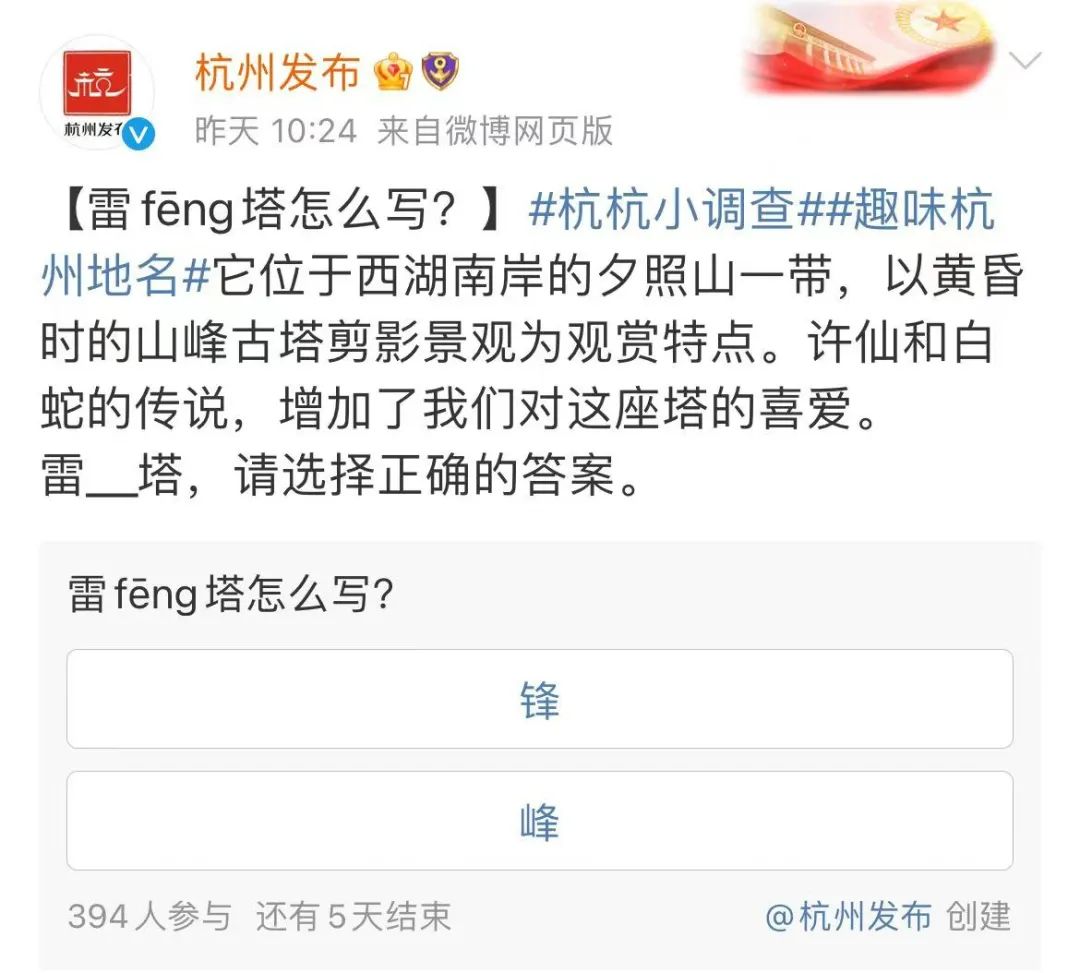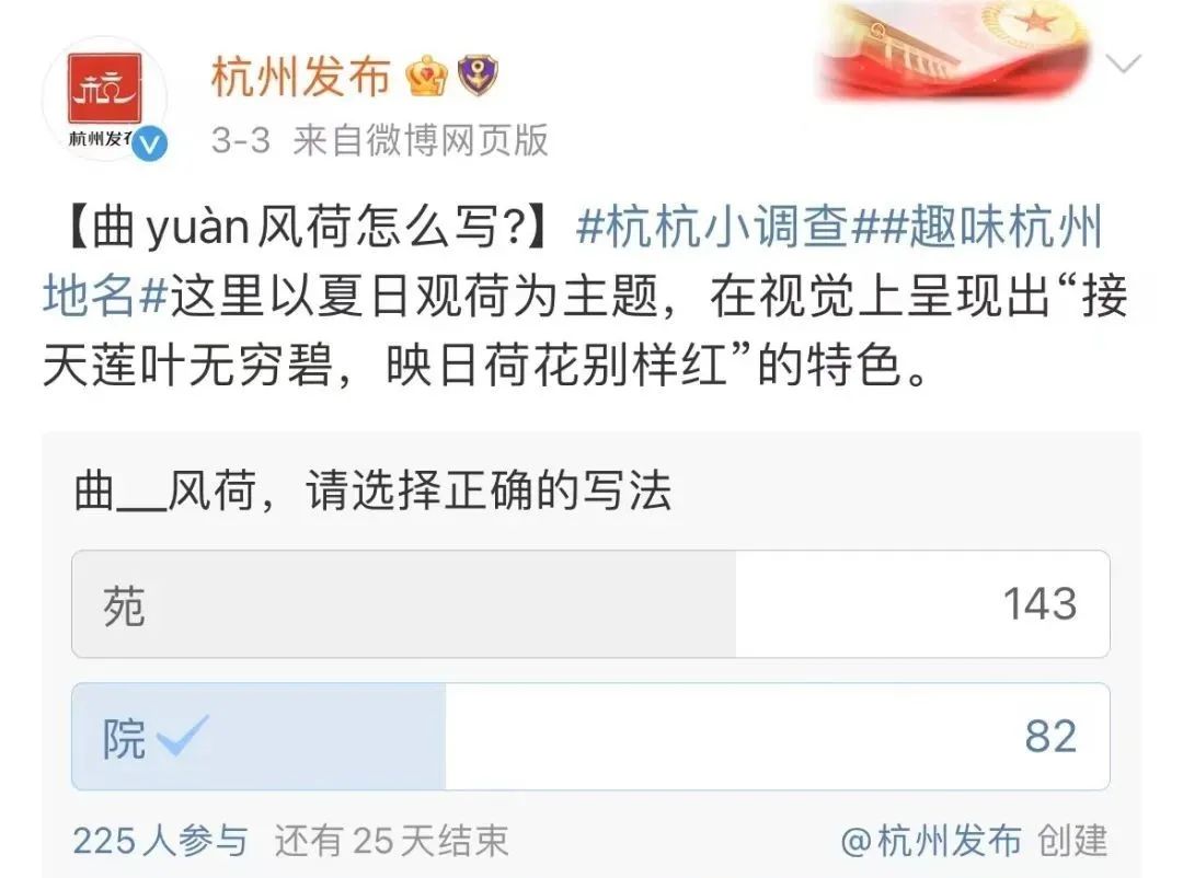 这个大家耳熟能详的西湖景点,在“杭州发布”微博平台参与投票的网友,超过六成选错了答案,
