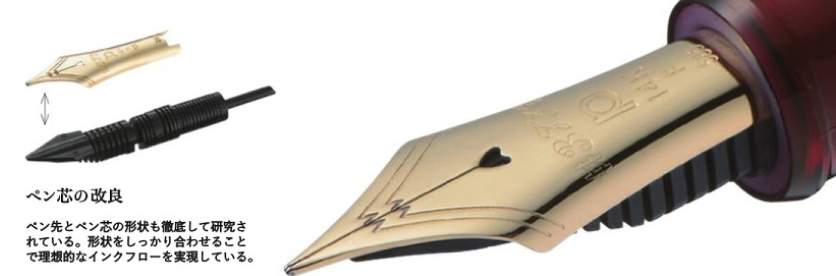 笔尖和笔舌的形状也经历过很多的实验和尝试,现产的3776的笔尖和笔舌完美贴合在一起,供墨稳定,控墨精准。