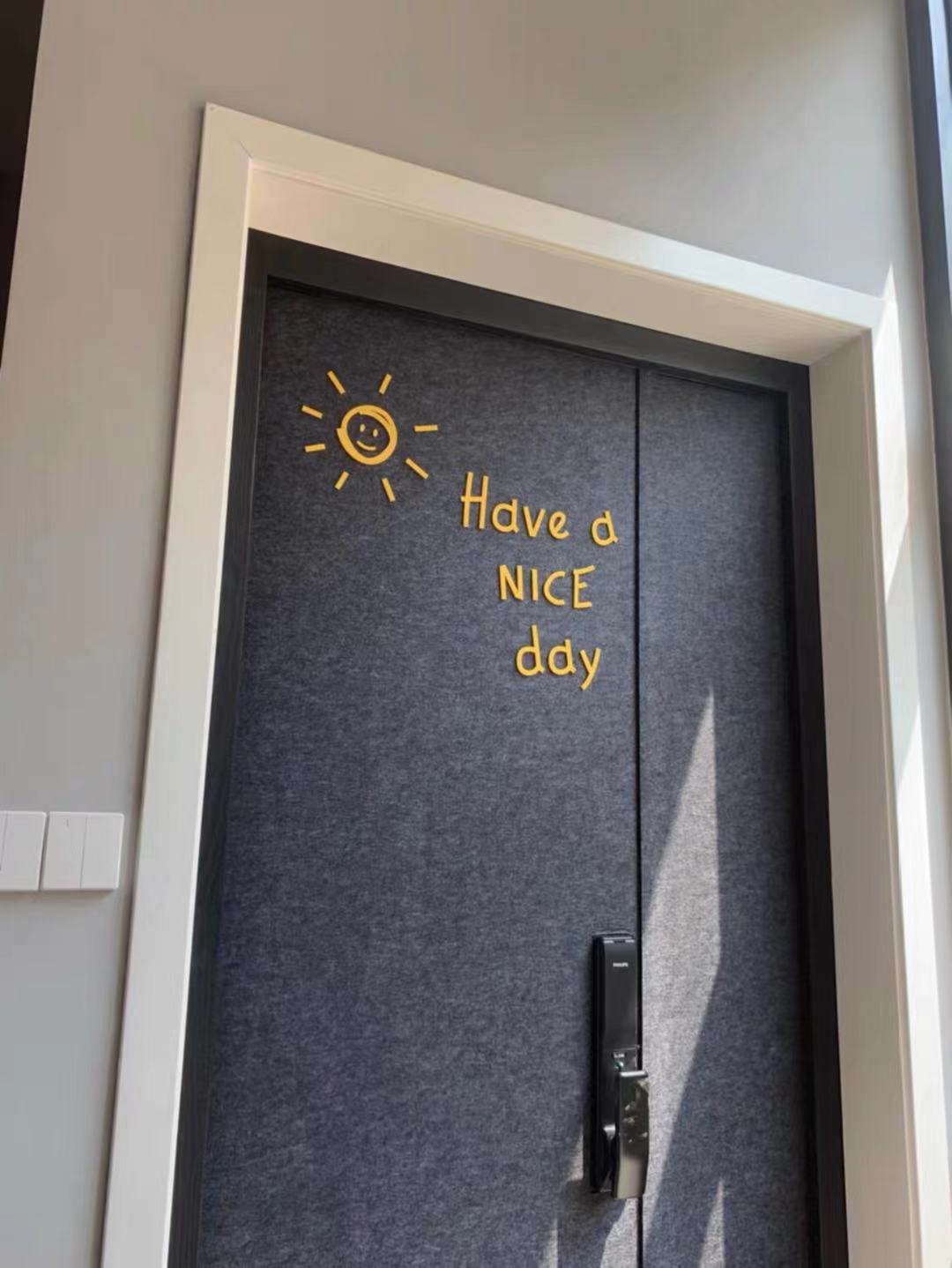 3、隔音棉毛毡,防盗门也是我们需要做隔音的一部分,很多老旧无电梯的小区,低楼层的住户经常会受到楼道上下楼来往人员的干扰,尤其是夜晚,特别影响别人的休息。防盗门内贴隔音毛毡,能有效缓解噪音的干扰。