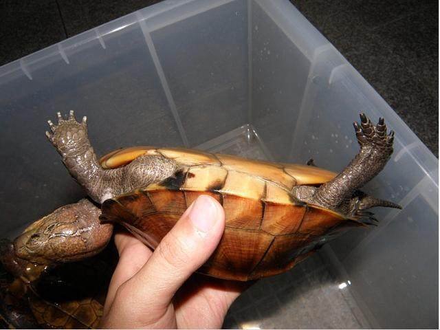 这个问题很有趣,因为乌龟的生殖器官都包在身体内,它们的长相又一样,所以没有一定的技巧就很难分清它们的性别了。但是只要懂得乌龟交配的姿势,就可以分辨出来。你知道吗,乌龟交配时是采用雄上雌下的姿势,为了避免交配时由雌龟壳上滑落,所以雄龟的腹甲略为凹陷,正好可以卡住雌龟突起的背壳;但是雌龟就不需要这种构造,因此腹甲是平的。这你就明白了,只要把乌龟翻过身来,用手指触摸腹甲的幅度,就能很快分辨出雌雄了。
