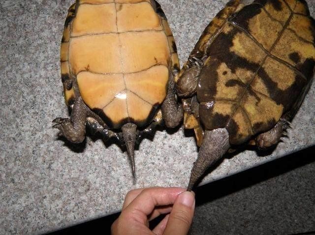 左边母,右边公,泄殖孔距离腹甲后端的距离一目了然(你可以这样理解,母的一般那个孔是在背甲最后端里面的,而公,那个孔位置一般都超过了背甲最后端)