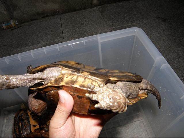 最后咱们来看看腹甲的凹陷(这个貌似太小的龟不明显,一般种龟容易辨别,所以小的龟,就按前面两点看下吧)
