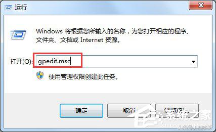 2、然后在运行框中输入“gpedit.msc”这样一串字符,打开组策略管理器。