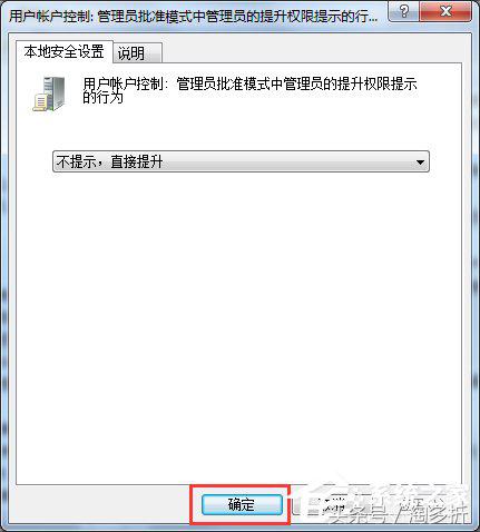 以上就是Win7如何关闭uac功能的教程了,方法很简单,我们只需要打开组策略编辑器,之后依照文章找到用户账户控制:管理员批准模式中管理员的提升权限提示选项,最后双击进去选择不提示,直接提升确定即可。