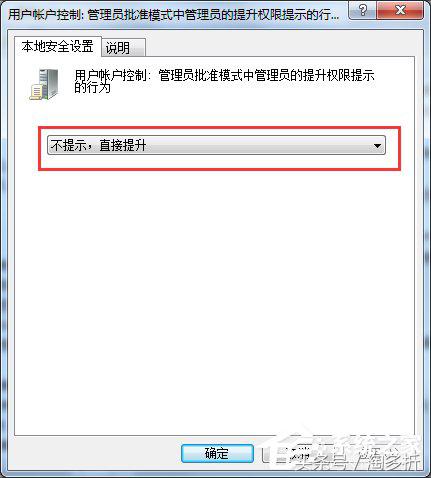 6、此时会弹出一个设置的选项,这时你需要选择不提示,直接提升,就是点击右边的下拉箭头之后,找到这样一个选项。然后点击确定即可。