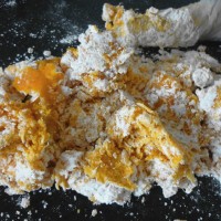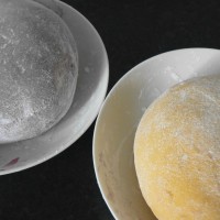 7. 混入木薯淀粉和高筋粉,主要是木薯淀粉,高筋粉不用太多,高筋粉是为了让芋圆更弹牙