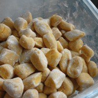 10. 切成1cm的小丁,撒上木薯淀粉,搓几下,变圆滑些