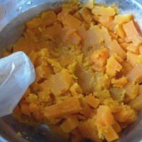 3. 切成1cm的小方,撒上白糖,入高压锅【也可用料理机榨成汁】