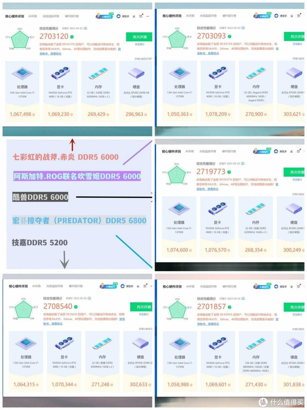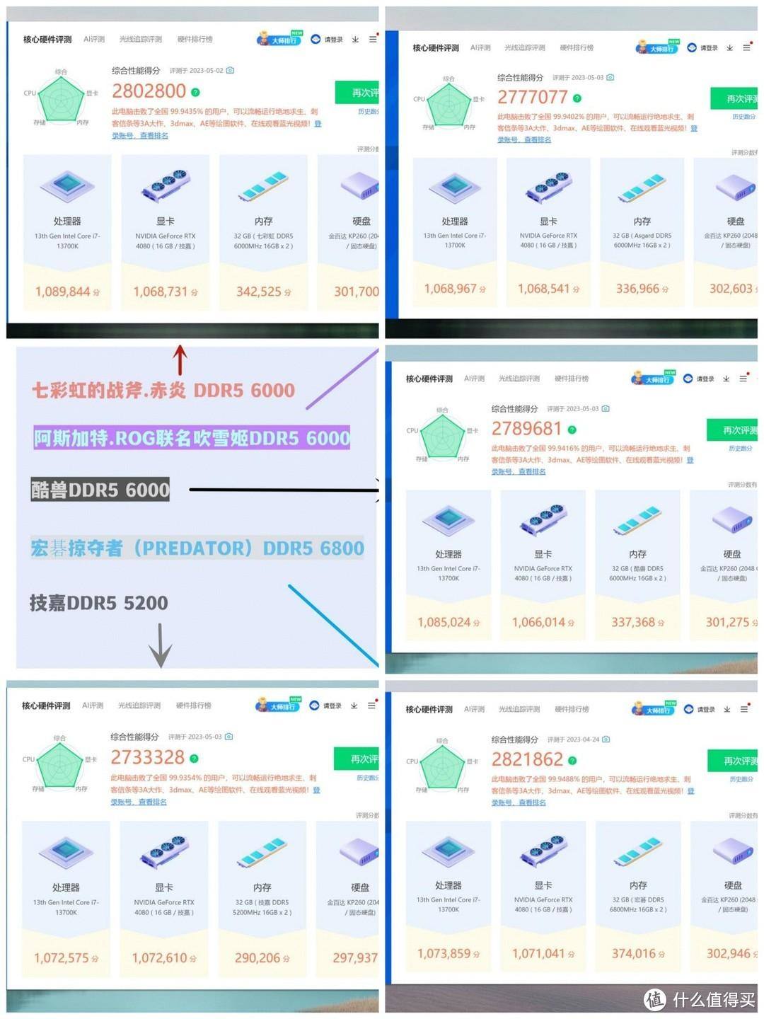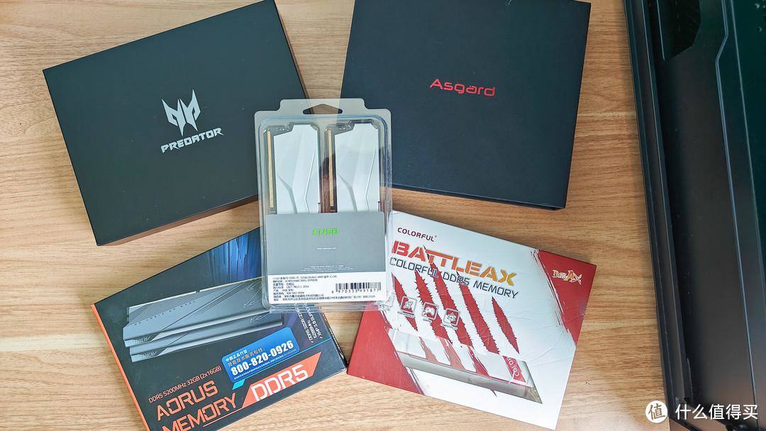 这几款战斧分别是(排名不分先后)七彩虹的战斧.赤炎 DDR5 6000马甲条,阿斯加特.ROG联名吹雪姬DDR5 6000内存灯条,酷兽DDR5 6000马甲内存,宏碁宏碁掠夺者(PREDATOR)DDR5 6800内存灯条,以及一对一年前的技嘉DDR5 5200马甲内存条。