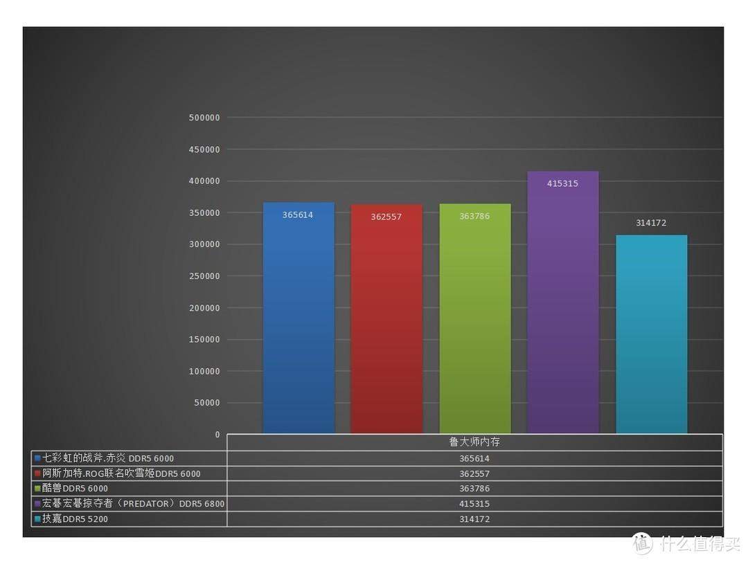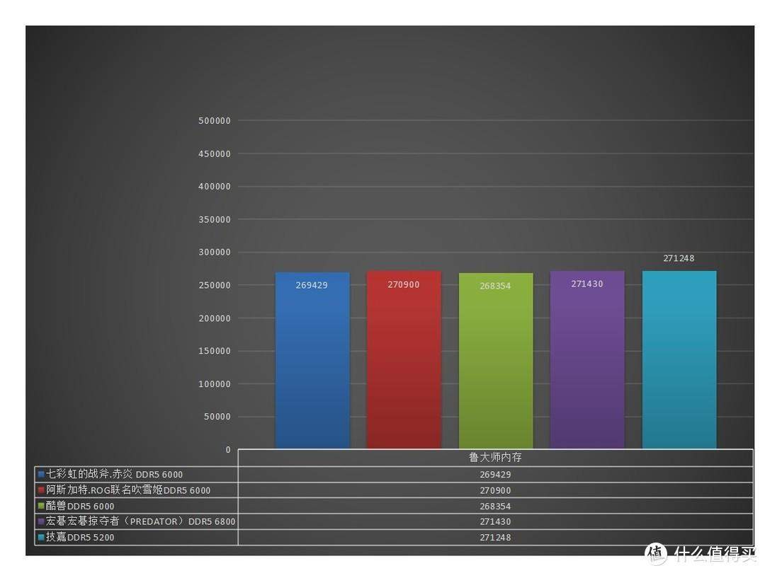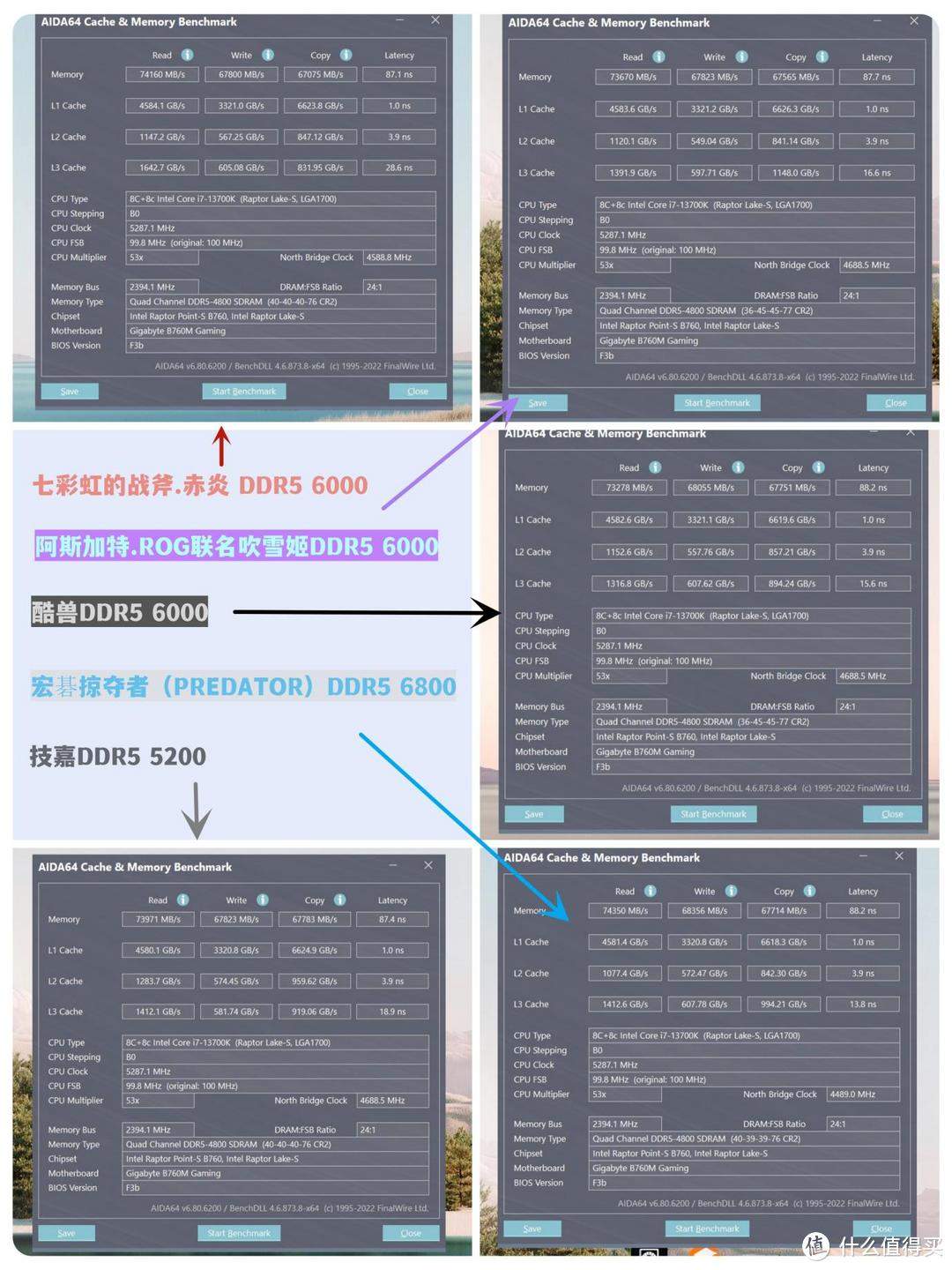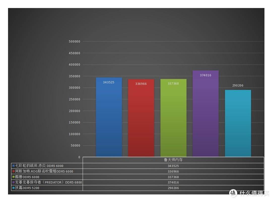 通过图表看得更加清楚,前面3列是开启XMP后6000MHz内存的表现,第四个是6800MHz,第五个是5200MHz。