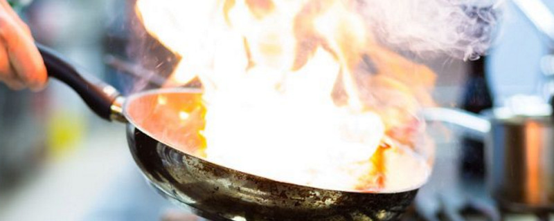 炒菜起火不用慌张,看到明火时拿着锅盖将锅全部盖住,关掉火伐就能将火全部扑灭,炒菜起火切忌不能用水浇,水会让热油溅出来烫到自己,等火全部灭掉,温度降下来之后再用冷水清洗。