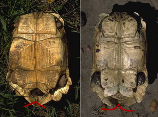 大部分公龟成体都或多或少有凹陷(这样骑母龟身上就更稳固了撒,嘻嘻),母龟则没有。