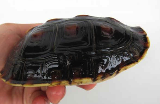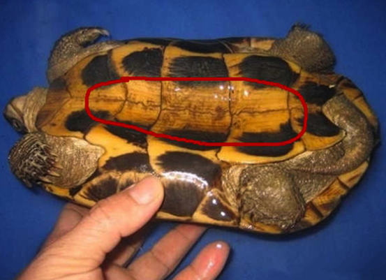 3、腹甲:腹甲是否凹陷,公乌龟有明显的凹陷, 母乌龟平坦。