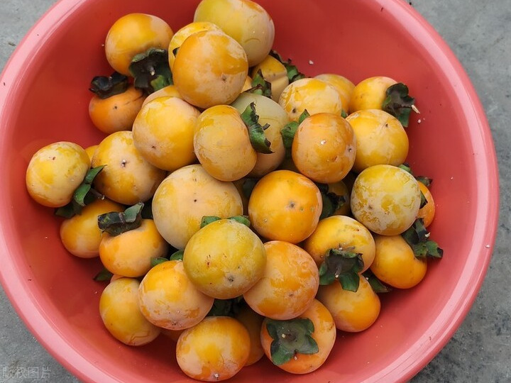 2.把柿子放入一个盛水的器物里,放入三十到五十度的温水,再放入柿子,注意水要能没过柿子,密封,一天一夜后,柿子就成熟了;