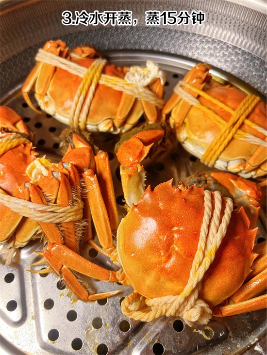 3.冷水开蒸,蒸15分钟。(大闸蟹蒸好以后不要着急拿出来,让它在锅里焖2-3分钟)