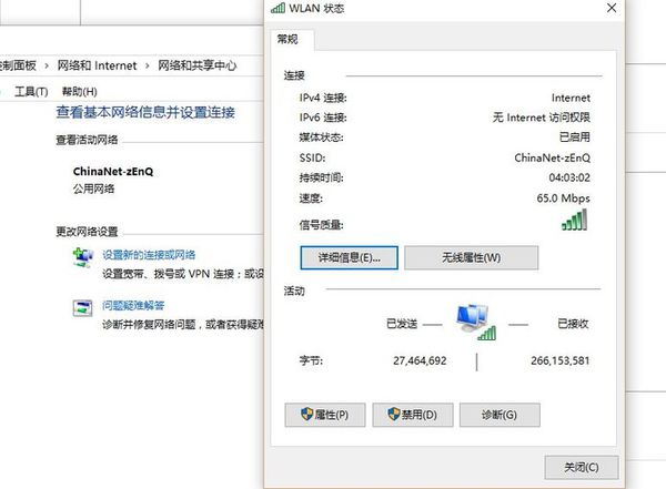 2、点击已连接到的WiFi的名称,弹出WLAN状态栏。