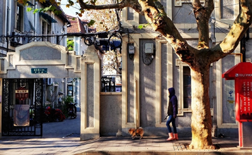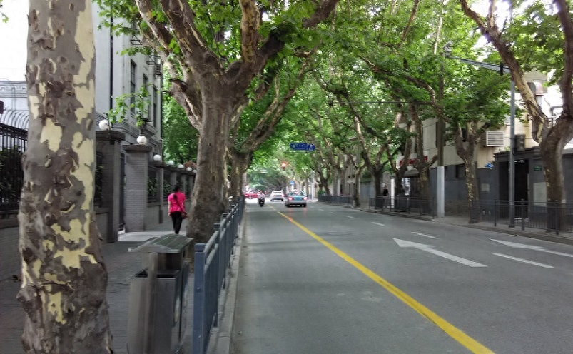 在马路两侧满是高大的法国梧桐和古典的花园洋房和公馆,过去大多都是达官显贵的宅邸。这些建筑均采用了中西结合的风格,各式各样,好像是一个万国俱乐部,如今已经成为城市发展的活化石,被誉为