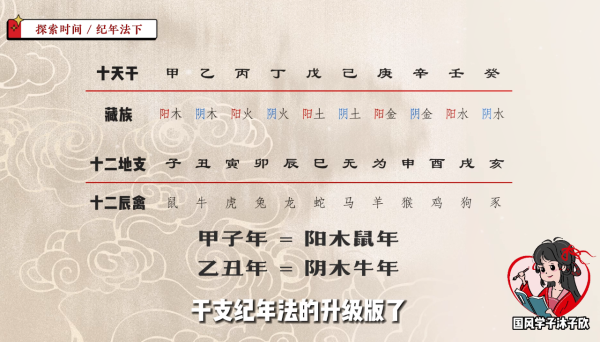 西藏的藏族甚至还在十二生肖法上自由发挥,把天干阴阳五行全加上去了,阳木就对应天干的甲,阴木对应乙,和十二生肖又组成了六十年一循环,甲子年就叫阳木鼠年,乙丑年就叫阴木牛年,这可以看做是干支纪年法的升级版了。