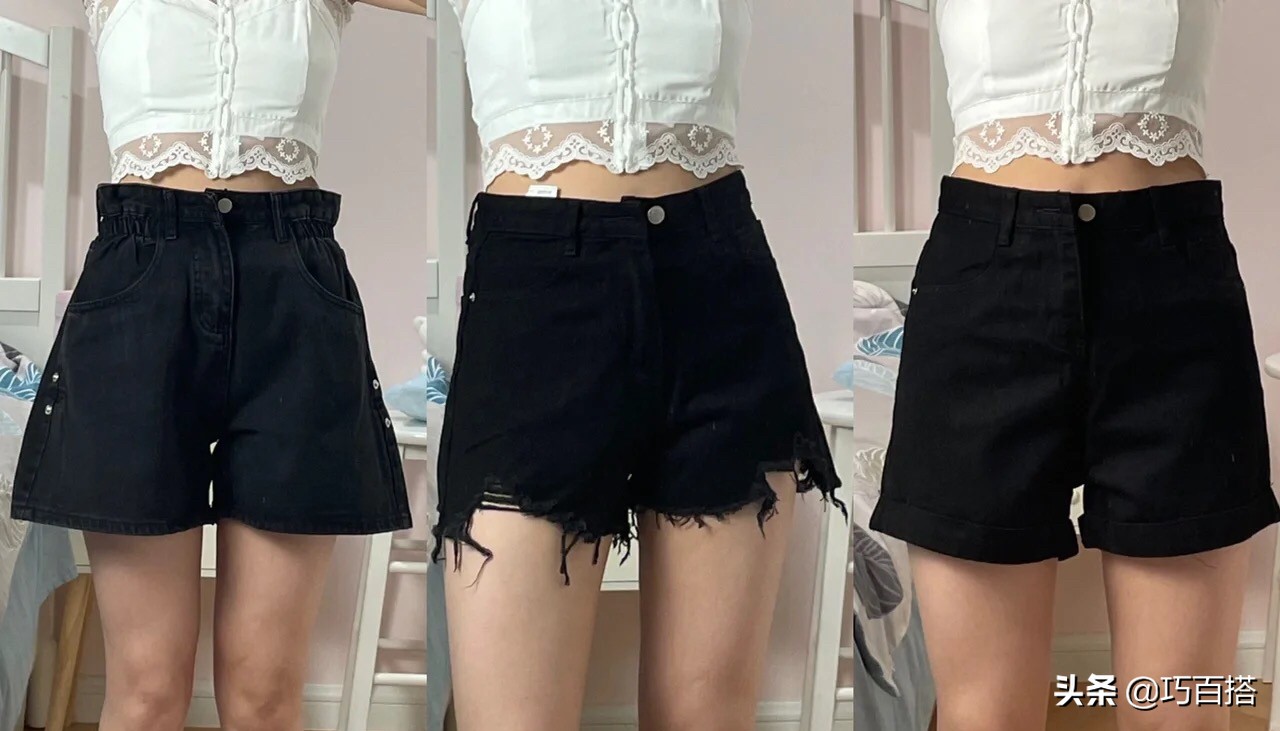 看上图的三条牛仔短裤,是不是腰部差别很大,所以我们我们需要选择适合自己的裤腰,比如太宽松得不行,显胖还掉档,应当选择臀部到腰部有明显曲线的牛仔裤。