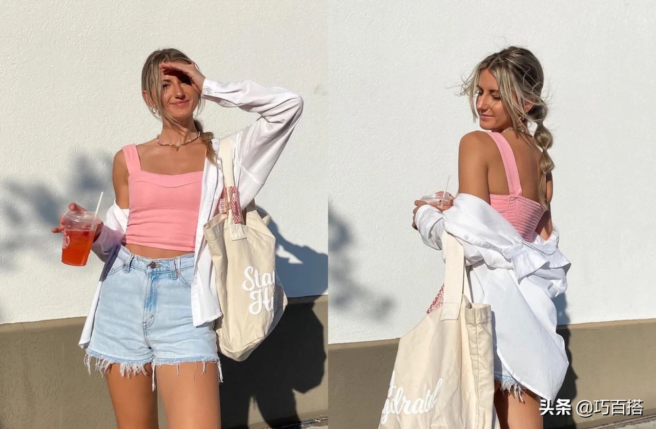 所以白色吊带衫也可以直接更换为白色的t恤衫,效果并不会相差太多。只是减少了一些性感,增加了一些清爽感,所以看起来更有校园感,减龄十足。