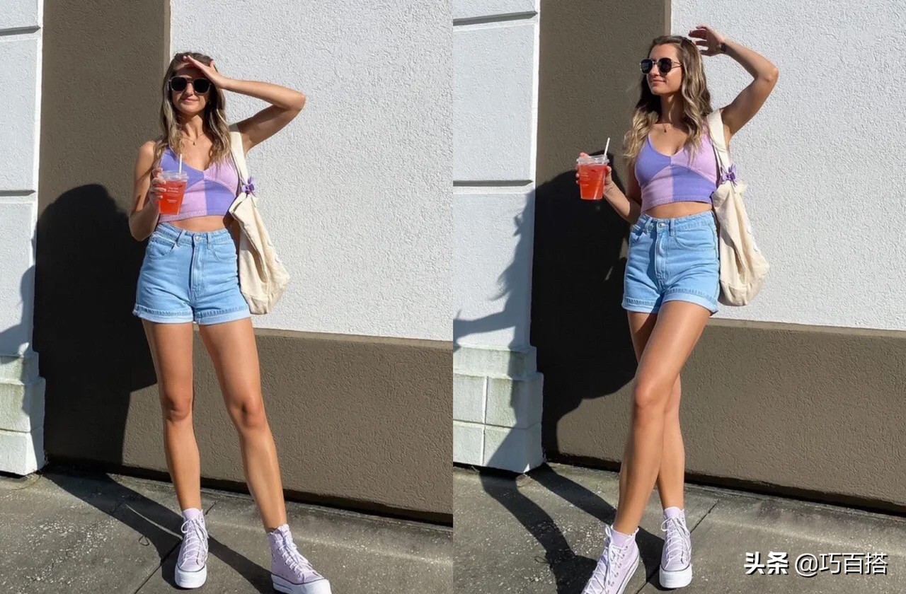 与其说是百搭,不如说是任意搭配,因为它不止是百搭。在夏季,牛仔裤也有了新的面貌,也就是我们所熟知的牛仔短裤。