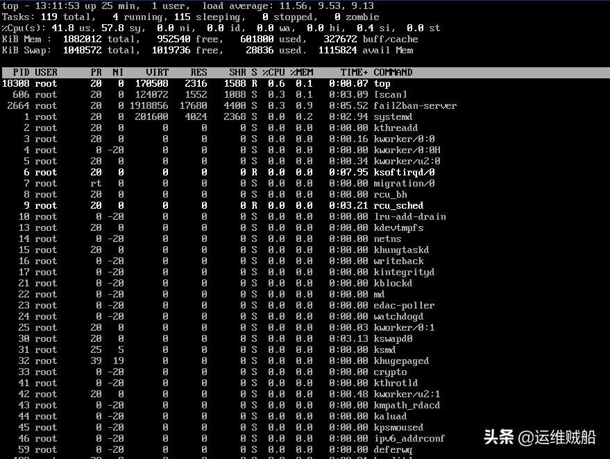 看了眼系统的负载(这里截图的时候已经做了一些重启处理),发现平均负载为19.40,高的离谱,绝对出问题了。