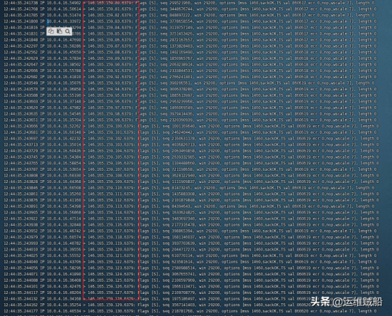 此时服务器在疯狂地对外发包,通过shell软件的可视窗口可以看到。为了更直观的看,使用以下命令,发现服务器对146.165.159.*的6379端口疯狂发包。