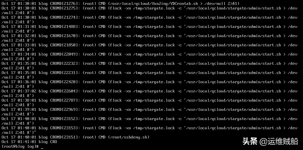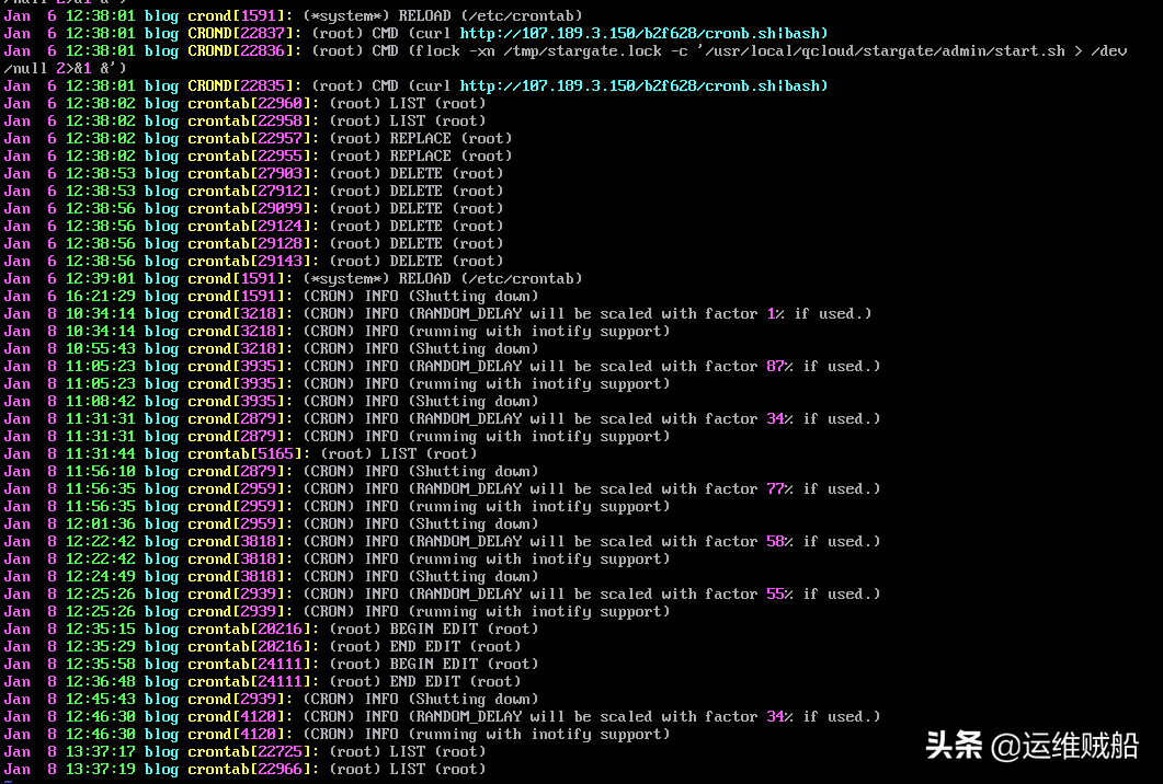 先不着急查问题吧,把比较不重要的文件先打成一个包备份,等会处理完网络问题后再下载到本地。先查一下有没有定时任务,使用以下命令: