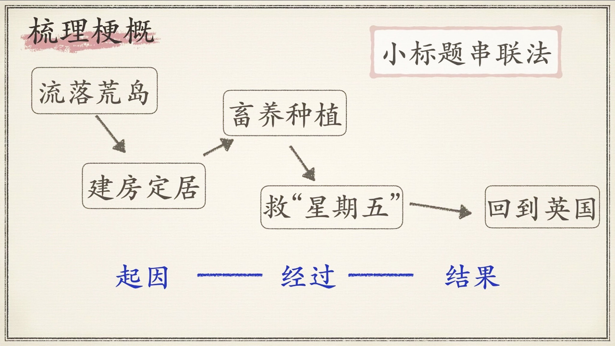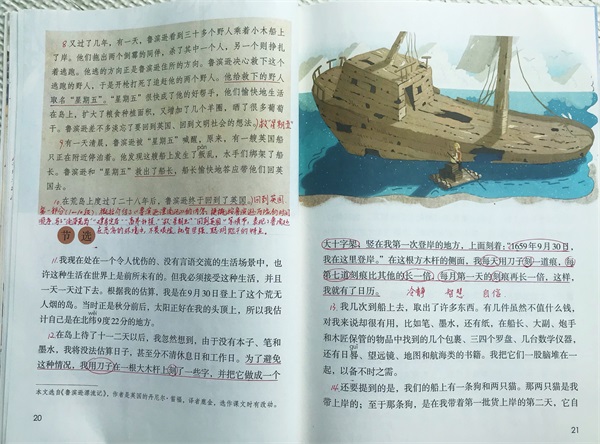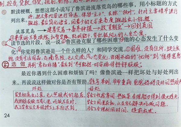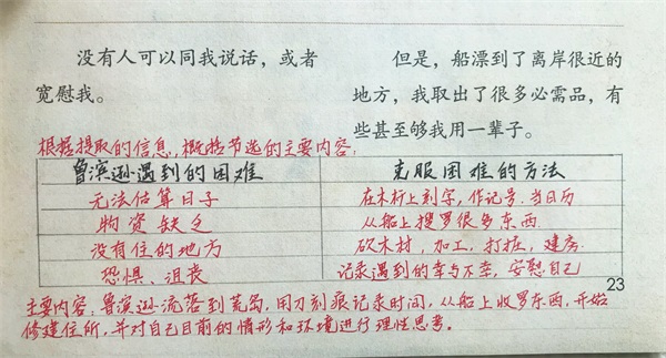 课后问题中也有让同学们用小标题的方式,标记出鲁滨逊流落荒岛的这些事情。