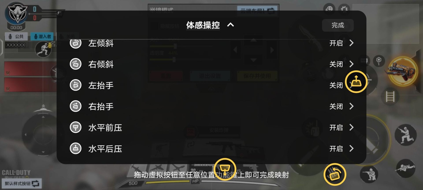 比如笔者在《使命召唤手游》中,设置了“水平前压”为切枪,在游戏时,把手机向前“压”一下,即可轻松切枪,别看这个小小的功能,在游戏的关键时刻,真的可以“救你一命”。