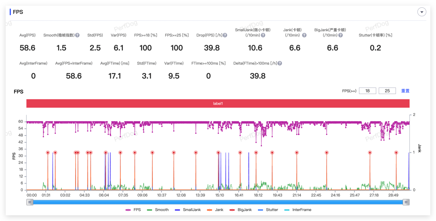 如下图所示,iQOO Neo7 平均帧率达到了 58.6fps,稳帧指数仅为 1.5(越低越好,一般游戏类 < 8)。这个成绩,基本和搭载骁龙 8 + 的 iQOO 10 Pro 持平,作为对比,后者平均帧率为 58.7fps,稳帧指数仅为 1.6。