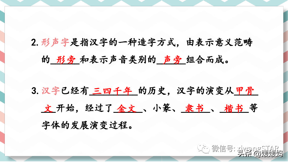 3.汉字有悠久的历史,汉字文化有丰富的内涵。