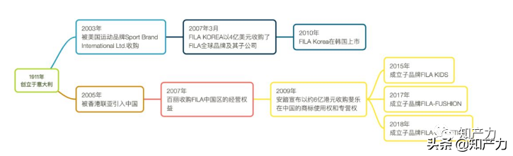 2009年,安踏集团收购FILA该品牌在中国大陆、香港和澳门拥有商标运营权,并于2017年收购了新加坡的商标运营权 。